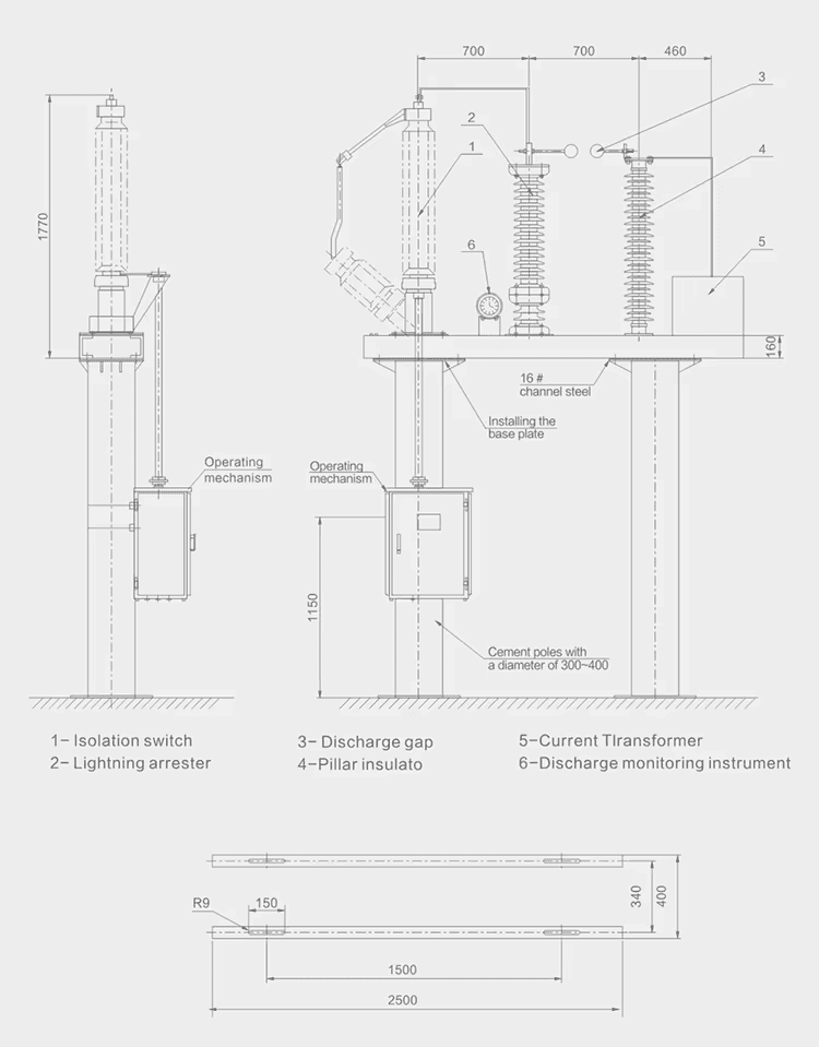 लुगाओको GW13 श्रृंखला ट्रान्सफर्मर न्यूट्रल पोइन्ट ओभरभोल्टेज प्रोटेक्टरहरू मुख्य रूपमा 110kV र 220kV पावर ट्रान्सफर्मरहरूको तटस्थ बिन्दु सर्किटहरूमा प्रयोग गरिन्छ। तिनीहरूले ट्रान्सफर्मरको तटस्थ बिन्दु इन्सुलेशनलाई ओभरभोल्टेज क्षतिबाट जोगाउँछन् र ट्रान्सफर्मरलाई ग्राउन्डेड र अनग्राउन्डेड न्यूट्रल पोइन्ट अपरेशन मोडहरू बीच स्विच गर्न सक्षम पार्छन्। जब बिजुली, पावर फ्रिक्वेन्सी, र स्विचिंग ओभरभोल्टेजहरू विरुद्ध एकै साथ सुरक्षा आवश्यक हुन्छ, सुरक्षाको लागि समानान्तर रूपमा ग्याप र अरेस्टर जडान गर्न सकिन्छ। GW13 श्रृंखला न्यूट्रल पोइन्ट ओभरभोल्टेज प्रोटेक्टर एक पूर्ण सेट हो जसले डिस्कनेक्टर, जिंक अक्साइड अरेस्टर, डिस्चार्ज ग्याप, र हालको ट्रान्सफर्मरलाई एकीकृत गर्दछ। यसले उच्च थर्मल क्षमता र उत्कृष्ट सुरक्षा, लचिलो कन्फिगरेसनहरू, र प्रयोगको सजिलो सुविधा दिन्छ। प्रयोगकर्ताको आवश्यकताहरू पूरा गर्न शुद्ध ग्याप डिजाइन वा विच्छेदक र डिस्चार्ज ग्यापको संयोजन चयन गर्न सकिन्छ।