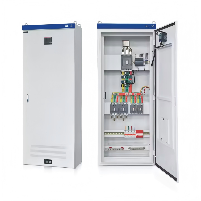 XL-21 कम भोल्टेज बिजुली वितरण क्याबिनेट मुख्यतया 50 Hz सम्म AC फ्रिक्वेन्सी र 500 V सम्म भोल्टेजहरू सहित तीन-चरण, तीन-तार, र तीन-चरण, चार-तार प्रणालीहरू प्रयोग गरेर औद्योगिक र खानी उद्यमहरूमा विद्युत वितरणको लागि प्रयोग गरिन्छ। यो बेन्ट स्टिल प्लेटबाट निर्मित एक संलग्न घेरा हो। चक्कु स्विच अपरेटिङ ह्यान्डल माथिल्लो दायाँ अगाडि स्तम्भमा अवस्थित छ, पावर स्विचिंग प्रदान गर्दछ। बसबार भोल्टेज संकेत गर्न वितरण प्यानलमा भोल्टमीटर स्थापना गरिएको छ। अगाडिको ढोकाले सजिलो निरीक्षण र मर्मतका लागि सबै आन्तरिक कम्पोनेन्टहरू उजागर गर्दछ। यो वितरण क्याबिनेटले अत्याधुनिक कम्पोनेन्टहरू प्रयोग गर्दछ, जसको परिणामस्वरूप कम्प्याक्ट डिजाइन, सजिलो मर्मतसम्भार, र लचिलो तार कन्फिगरेसनहरू हुन्छन्। एयर सर्किट ब्रेकरहरू र सर्ट-सर्किट सुरक्षाका लागि फ्यूजहरूको अतिरिक्त, क्याबिनेटले कन्ट्याक्टरहरू र थर्मल रिलेहरू पनि समावेश गर्दछ। अगाडिको ढोकाले बटन र सूचक बत्तीहरू समायोजन गर्दछ।